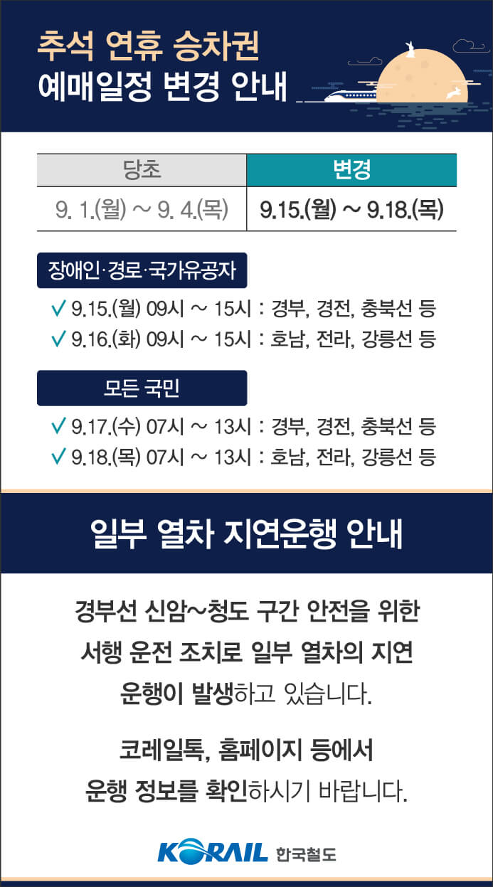 추석 기차표 예매일정,장애인우선예매,지연운행 및 온라인 예약방법